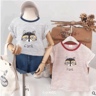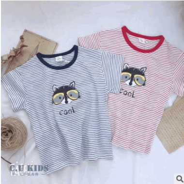 童裝條紋t恤短袖2019夏季新款韓版中大兒童打底衫竹節棉圓領上衣