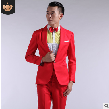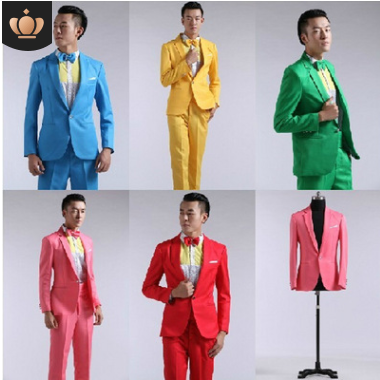 高檔新款韓版男士禮服西服彩色西裝結婚舞臺主持演出影樓男裝套裝
