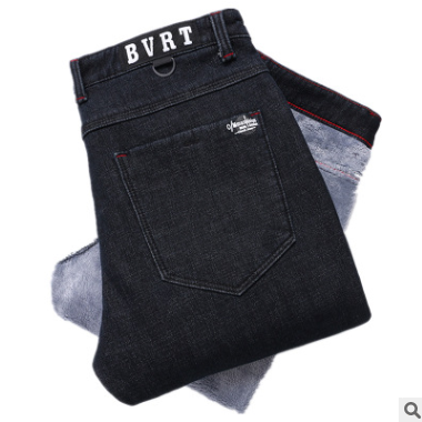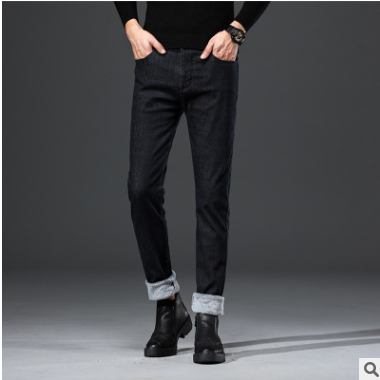 男式冬季加絨牛仔褲修身直筒男牛仔長褲韓版時尚潮流加絨長褲青年