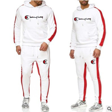 跨境新款連帽衛衣運動休閑套裝 時尚潮流針織跑步運動服 一件代發