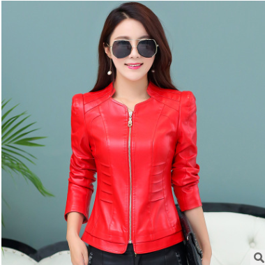 2019春秋新款海寧皮衣女短款韓版修身立領大碼女裝小皮夾克外套潮