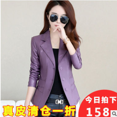 2019春秋新款海寧皮衣女短款韓版修身顯瘦西裝領小皮夾克大碼外套