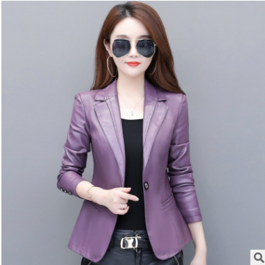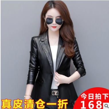 2019春秋新款海寧皮衣女短款機(jī)車韓版修身顯瘦西裝領(lǐng)皮夾克小外套