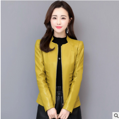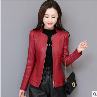 2019春秋新款海寧皮衣女短款韓版修身顯瘦女裝立領皮夾克大碼外套