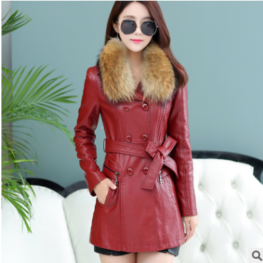 2019秋冬新款海寧皮衣女中長款韓版修身顯瘦女裝西裝領皮風衣外套