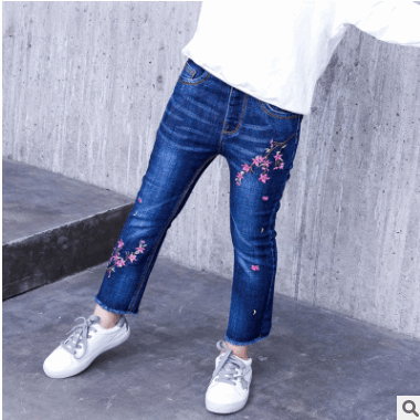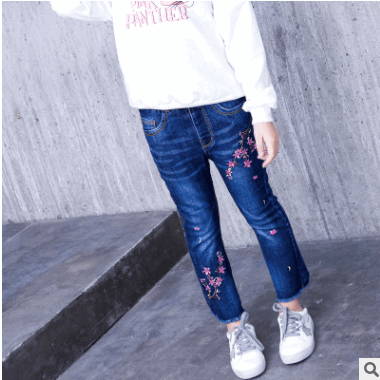 女童牛仔褲秋冬新款童裝女童牛仔褲中大童褲刺繡兒童長(zhǎng)褲一件代發(fā)