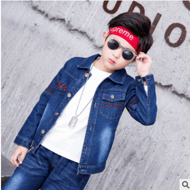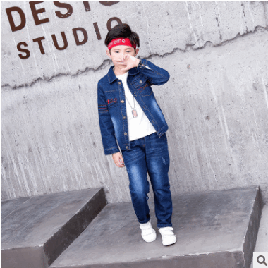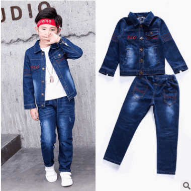 童裝男童牛仔套裝2018秋冬中大童兒童刺繡牛仔套裝男童長袖兩件套