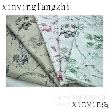 印花面料 棉麻印花 小碎花面料 麻本色棉布料
