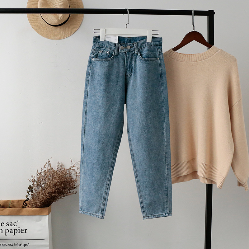 [比正]復古港味九分直筒牛仔褲女 秋冬新款休閑顯瘦哈倫褲潮9891