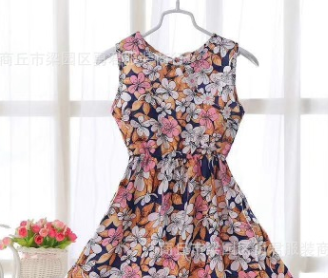 夏季女大童無袖造型百褶可愛連身睡裙公主裙綿綢人造棉空調5-9歲