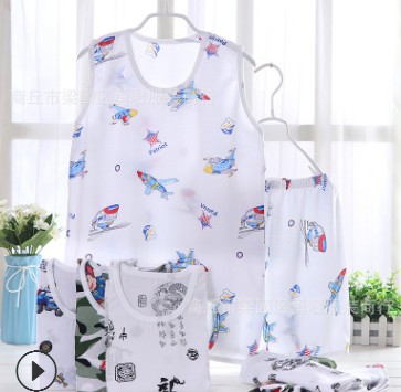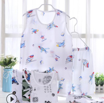 廠家直銷男女童夏季綿綢人造棉童套裝睡衣無袖背心圓領空調家居服