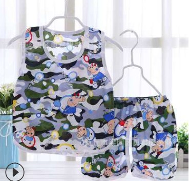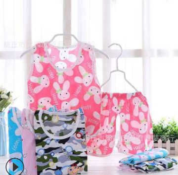 廠家直銷男女童夏季綿綢人造棉童套裝睡衣無袖背心圓領空調家居服