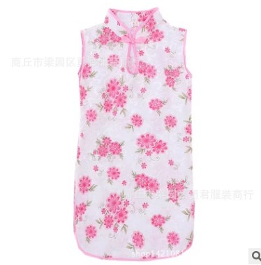 夏季新款中大女童綿綢民族風無袖旗袍裙子