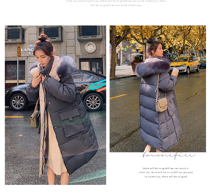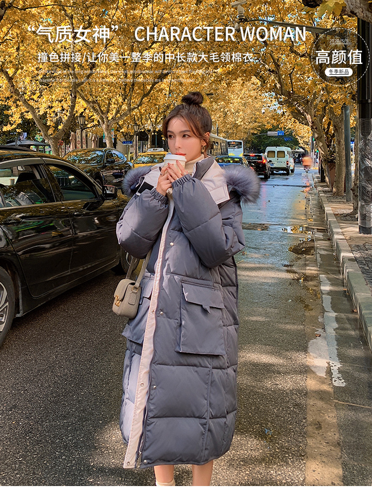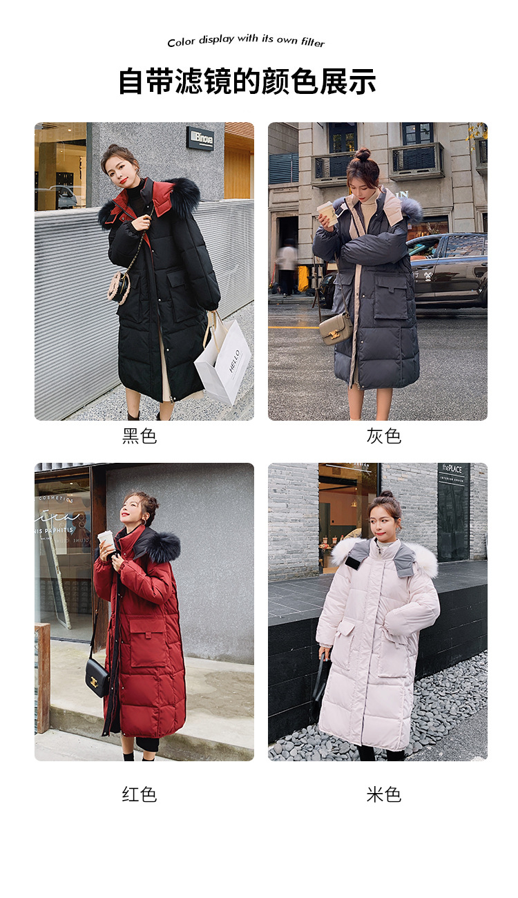 2020冬季新款韓版時尚大毛領(lǐng)羽絨服女中長款過膝加厚寬松大碼外套