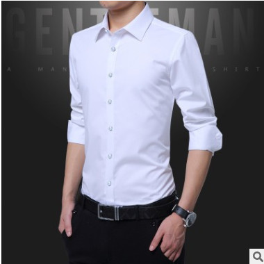 新款貿(mào)易春秋男式純色長(zhǎng)袖襯衫青年韓版修身免燙正裝襯衣商務(wù)休閑