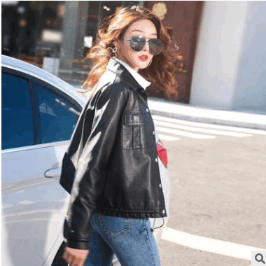 皮衣外套女2018秋款韓版水洗 皮夾克修身時尚外套潮