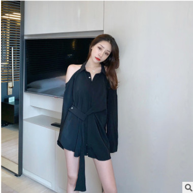 實拍2019新款設計感心機上衣洋氣露肩掛脖襯衫