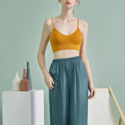 法式美背女士無鋼圈插片防走光螺紋棉質透氣排濕運動舒適文胸