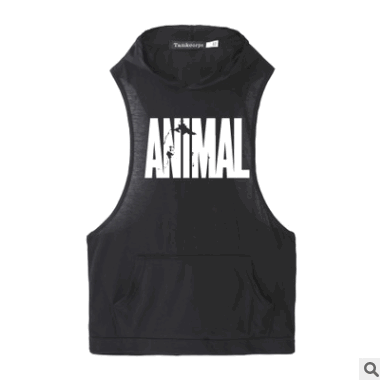 外貿(mào)深挖健美ANIMAL款健身連帽坎肩背心男夏帶帽健身房背心9828