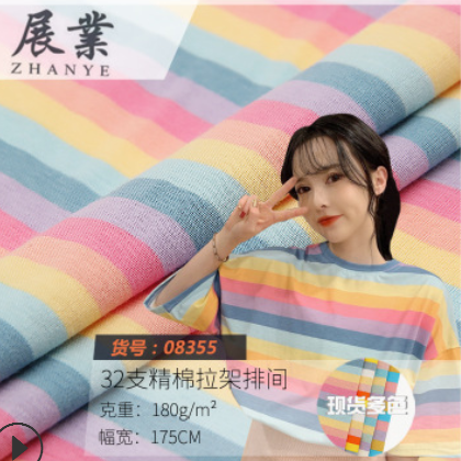 展業廠家批發 08355 精棉條紋彈力T恤童裝女裝吊帶衫連衣裙面料