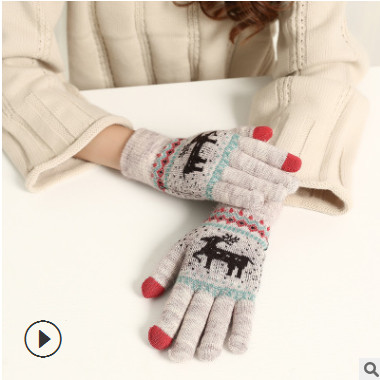 騎行全指可觸屏手套 冬季戶外男女運動毛線分指保暖針織手套批發