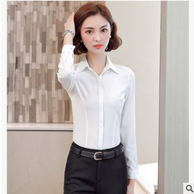 2019春秋韓版襯衫女白襯衫學(xué)生職業(yè)女裝大碼長袖防走光打底女襯衣