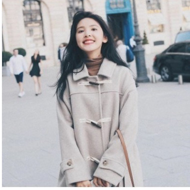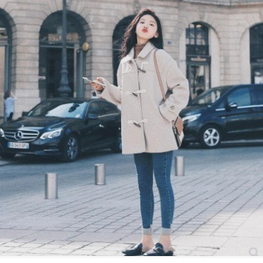 毛呢外套女2018新款短款小個子寬松學生加厚牛角扣森系呢子大衣潮