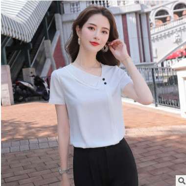 2020夏季新款寬松顯瘦氣質短袖襯衫女棉白色上衣女裝批發