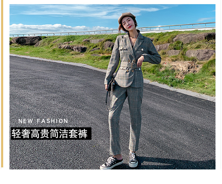 2019秋款舒適收腰西裝格子兩件套修身顯瘦氣質(zhì)優(yōu)雅百搭潮流