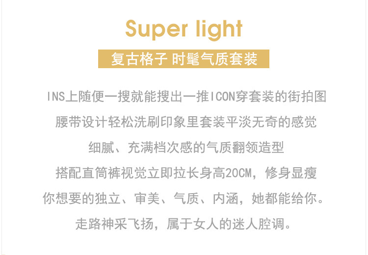 首頁 > 供應(yīng)產(chǎn)品 > 2019秋款舒適收腰西裝格子兩件套修身顯瘦氣質(zhì)優(yōu)雅百搭潮流