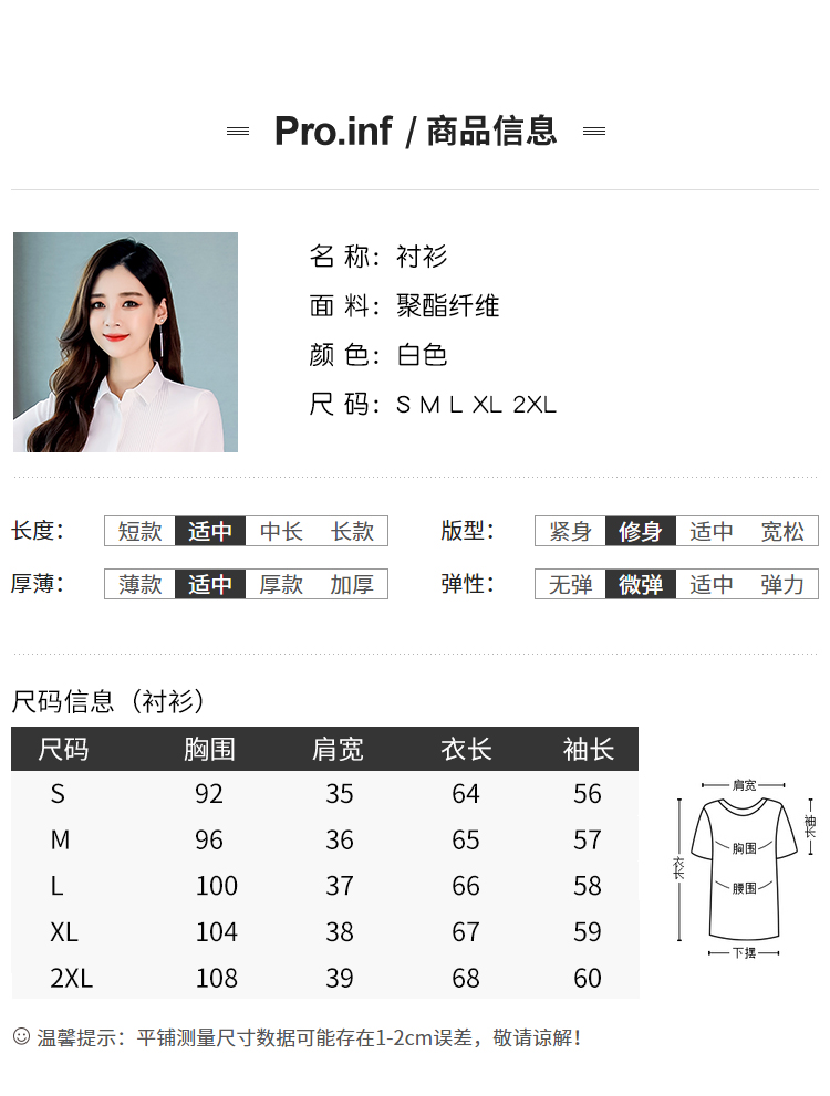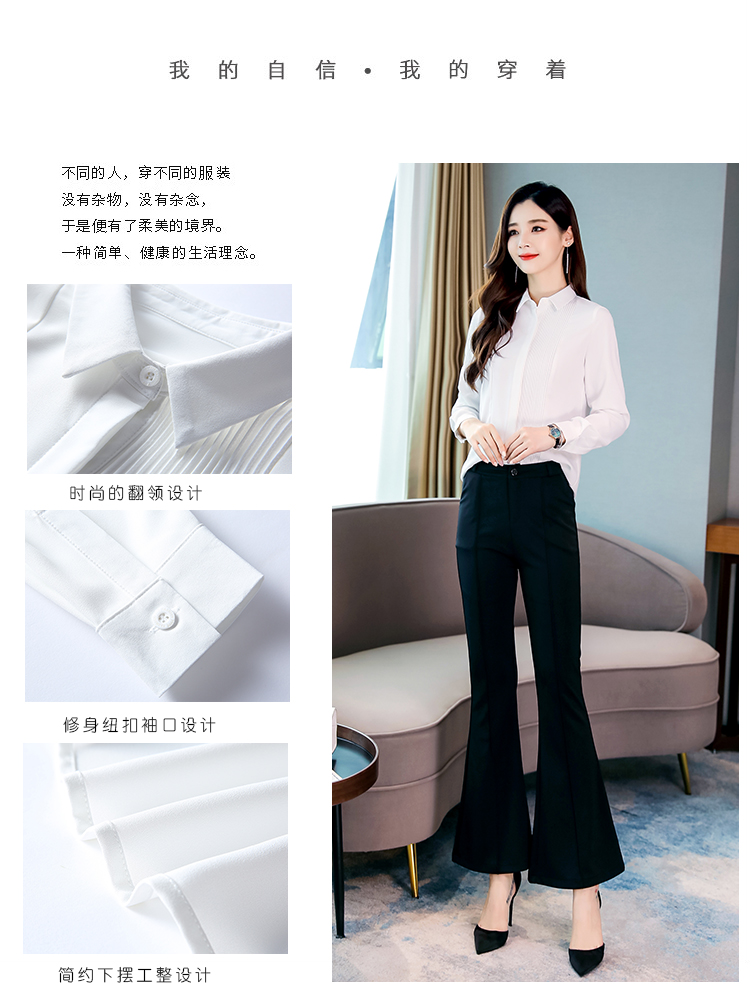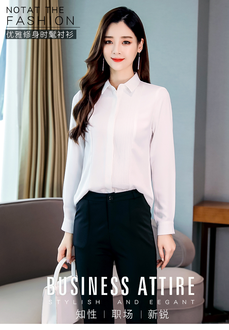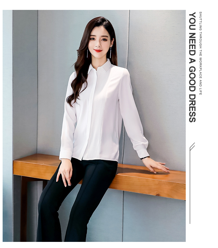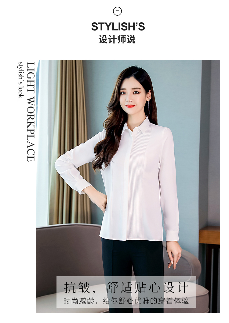2019新款時(shí)尚優(yōu)雅長袖襯衫褶皺長袖方領(lǐng)襯衫袖純色