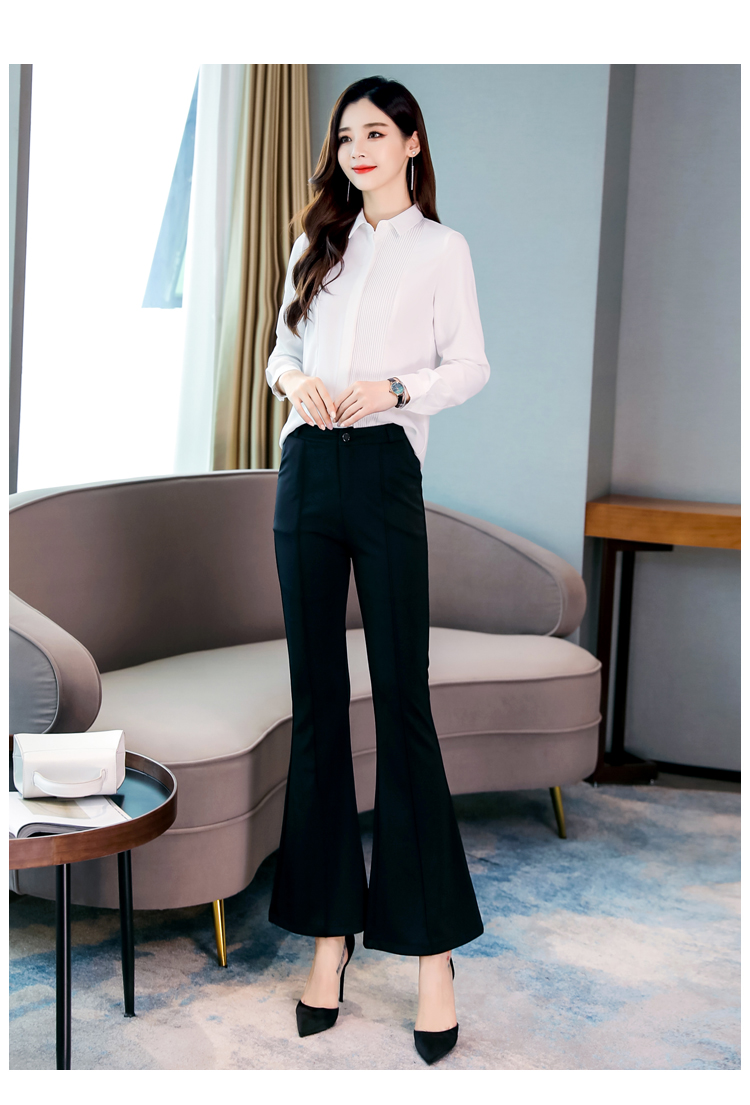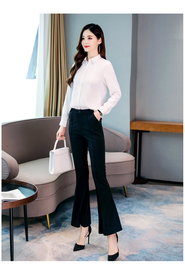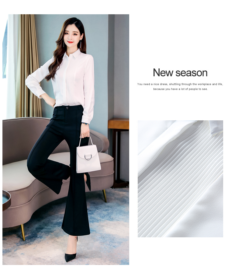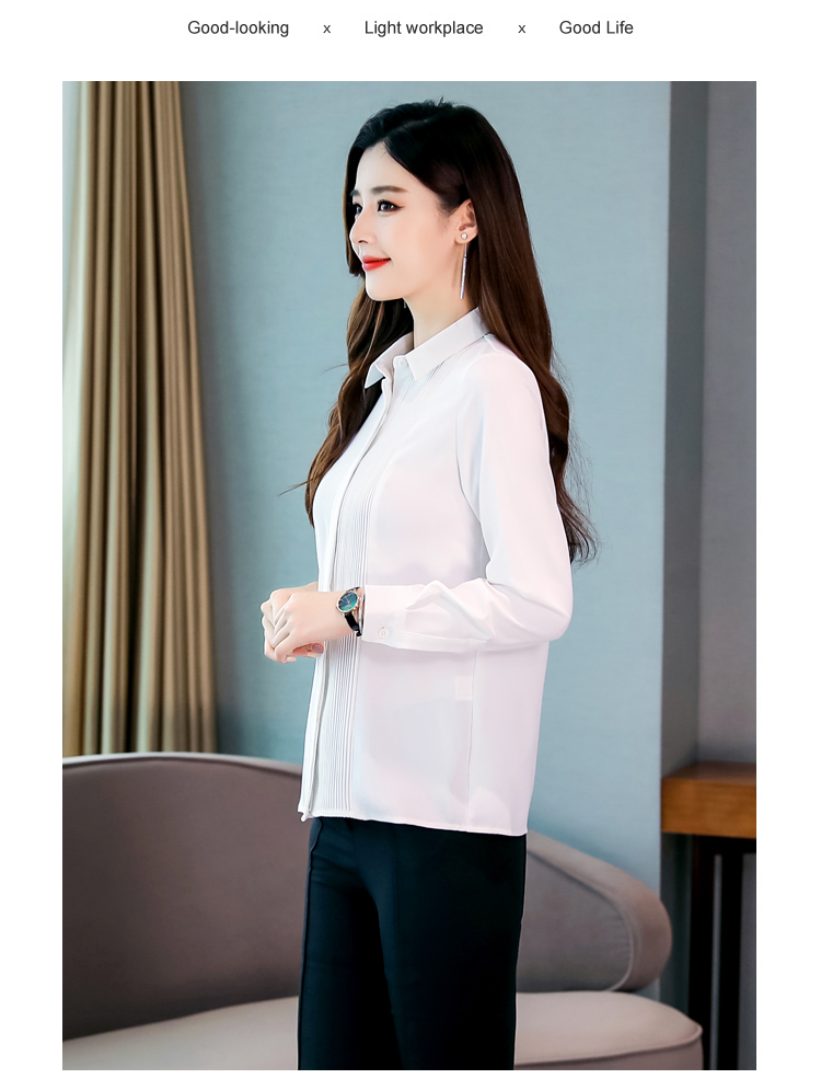 2019新款時(shí)尚優(yōu)雅長袖襯衫褶皺長袖方領(lǐng)襯衫袖純色