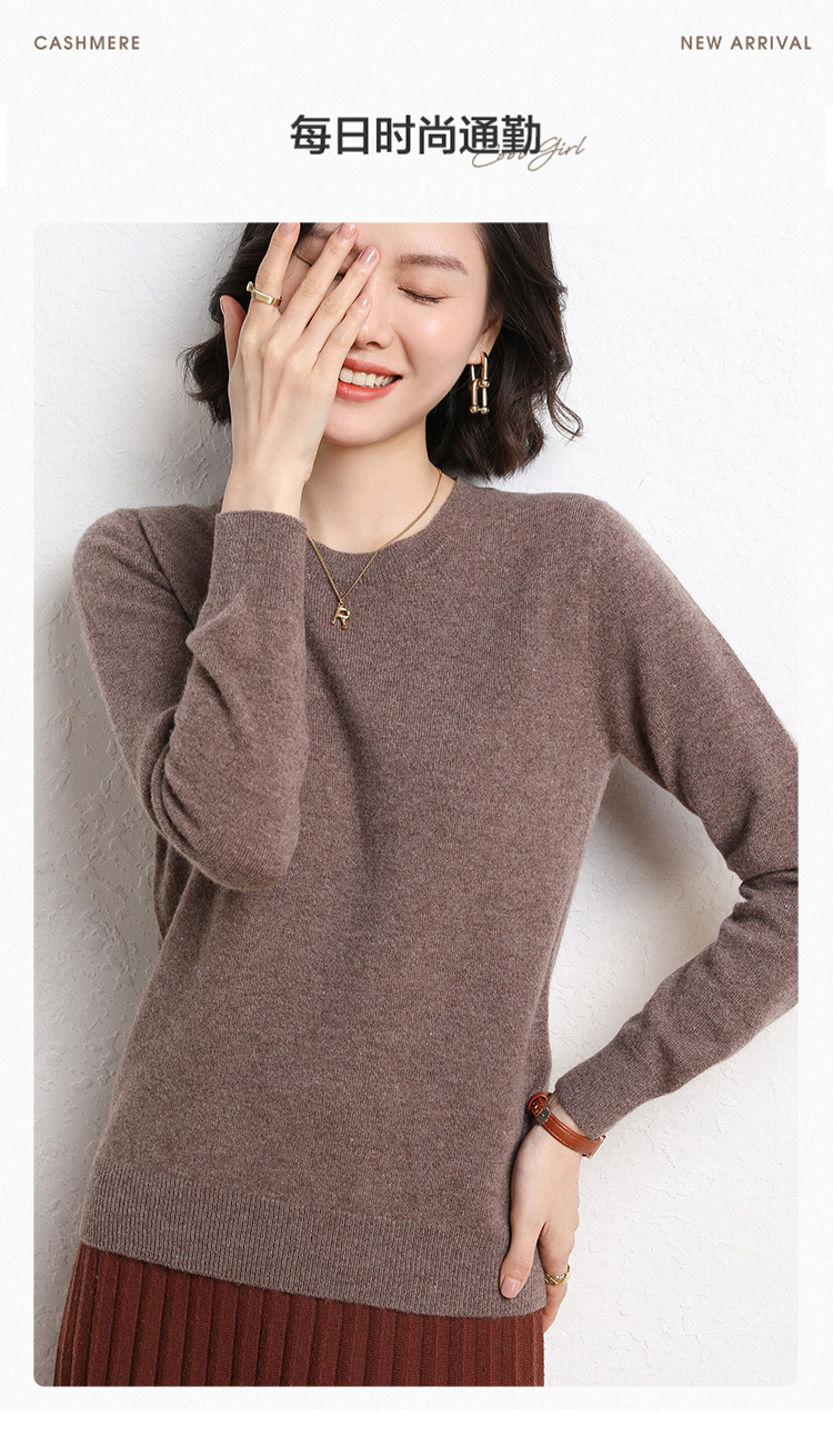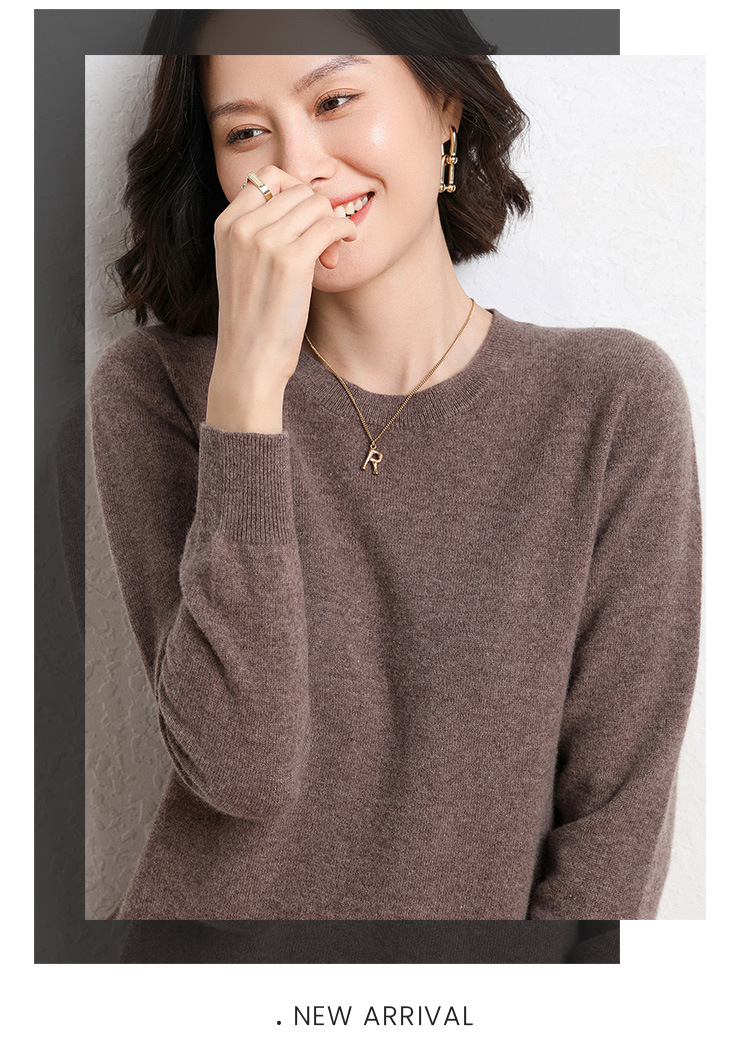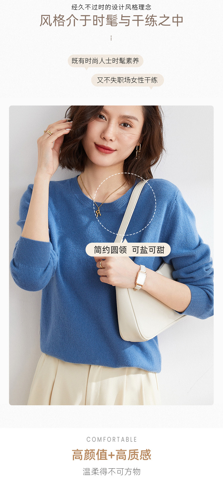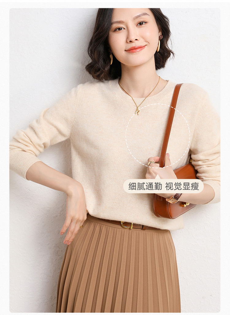 2024春秋新款圓領毛衣針織衫女長袖內搭寬松氣質顯瘦打底衫上衣