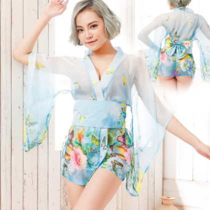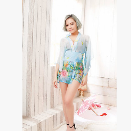 性感睡衣透明和服情趣內(nèi)衣 真絲雪紡碎花制服成人睡裙寬松 1813
