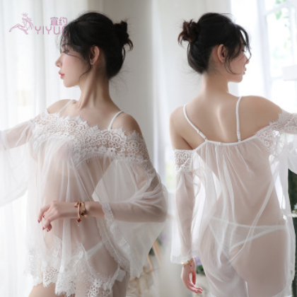 宜約歐美外貿性感露肩蕾絲情趣睡裙套裝透視網紗內衣女士睡裙9047