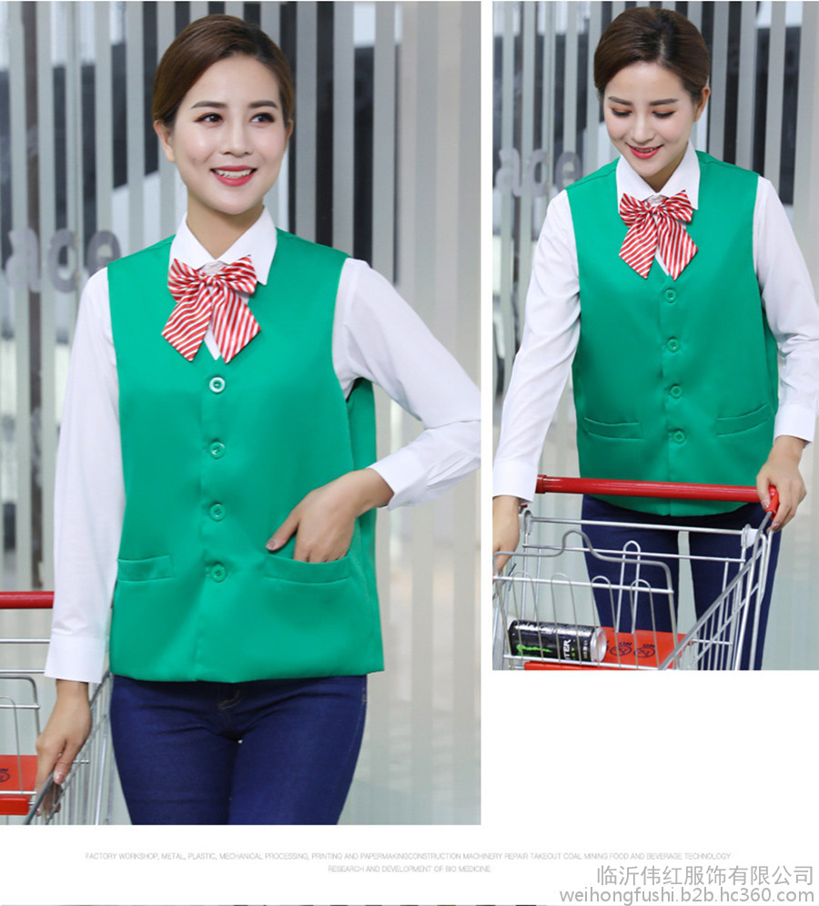 臨沂偉紅服飾有限公司、臨沂志偉服飾有限公司、淄博張店志偉服裝廠專業訂做超市商場各式工作服職業裝。品質是企業的靈魂、誠信是合作的基礎、共贏是合作的目的!工作服顧名思義是指工作時穿著的服裝。一般是工廠或公司發放給職員統一著裝的服裝,我們稱之為工作服。工作服還有些人喜歡稱為:廠服、職業裝、工衣等。