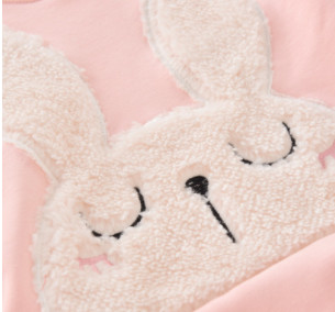 童裝秋冬新款復合一體絨加絨連衣裙 韓版女童兔子貼布長袖連衣裙