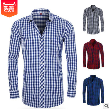 【跨境專供】亞馬遜速賣通 ebay wish熱賣男式純棉格子休閑襯衫
