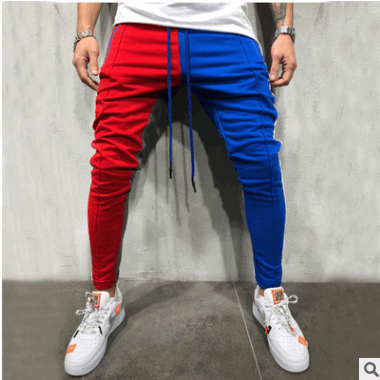 2019外貿爆款男士休閑拼色設計個性運動褲嘻哈風修身男人長褲107