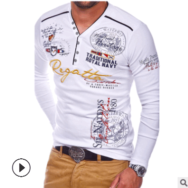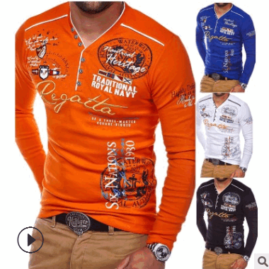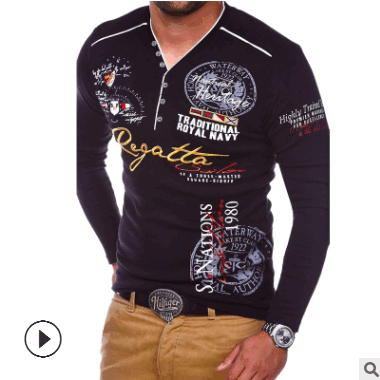 POLO衫定制商務男士秋上新歐美創意印花男裝修身長袖文化衫16082