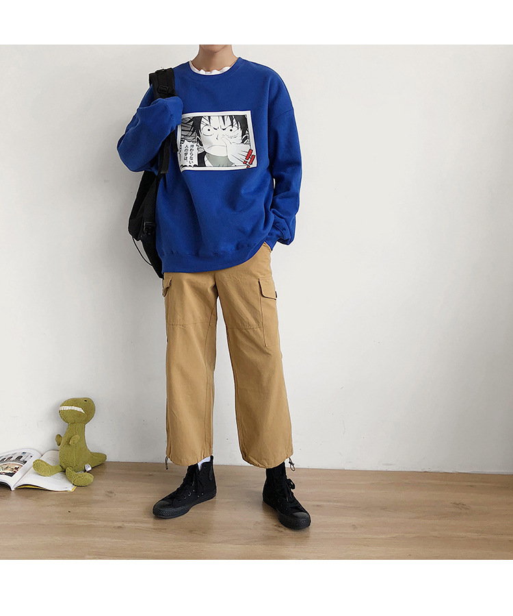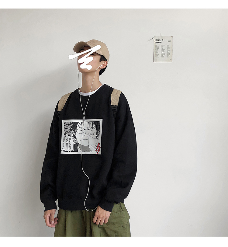 2019秋冬新款衛衣男寬松圓領動畫卡通印花套頭外套青少年潮流上衣