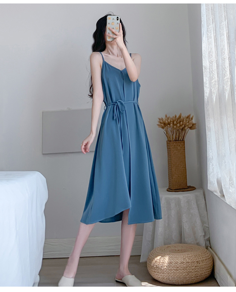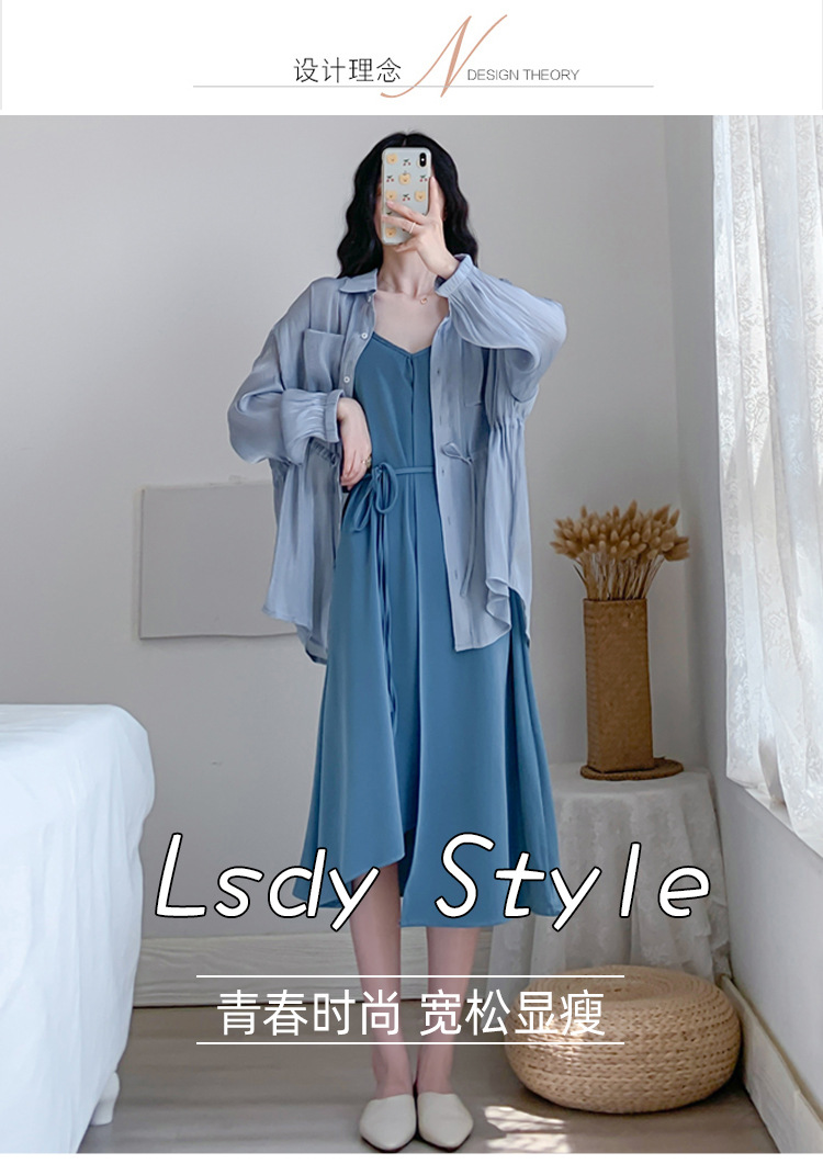 2021春季新款大碼女裝胖妹妹洋氣不規(guī)則吊帶連衣裙防曬襯衫兩件套