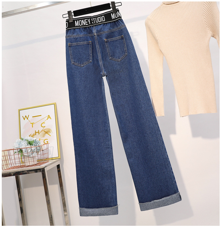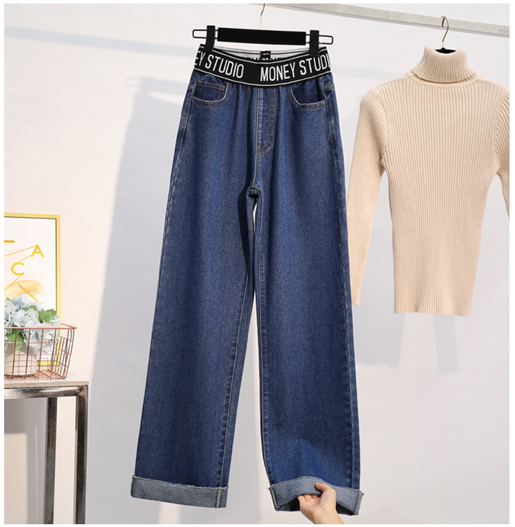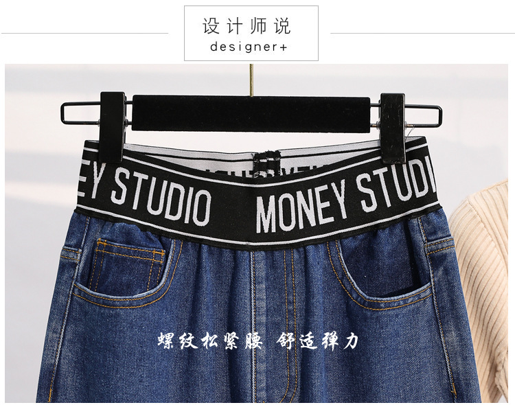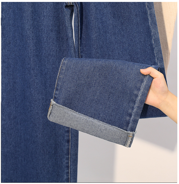 2021年春裝新款大碼女裝胖MM高腰牛仔褲薄款寬松直筒闊腿褲九分褲