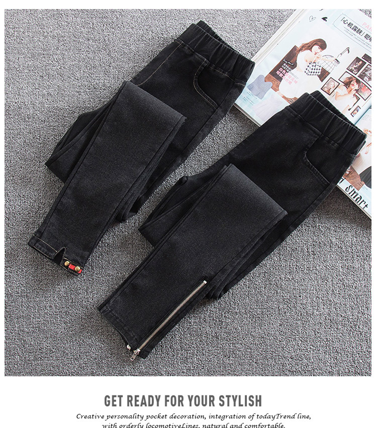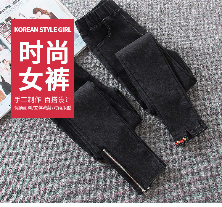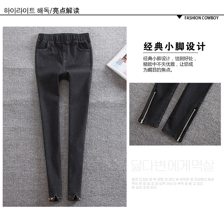 2020年新款大碼女裝胖mm高腰彈力小腳褲韓版松版腰仿牛仔長褲