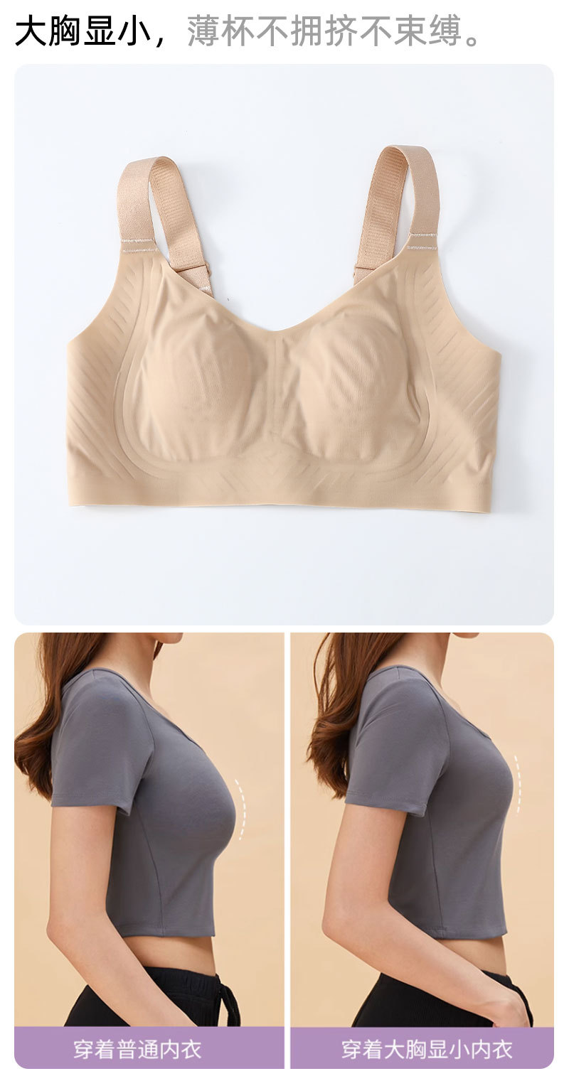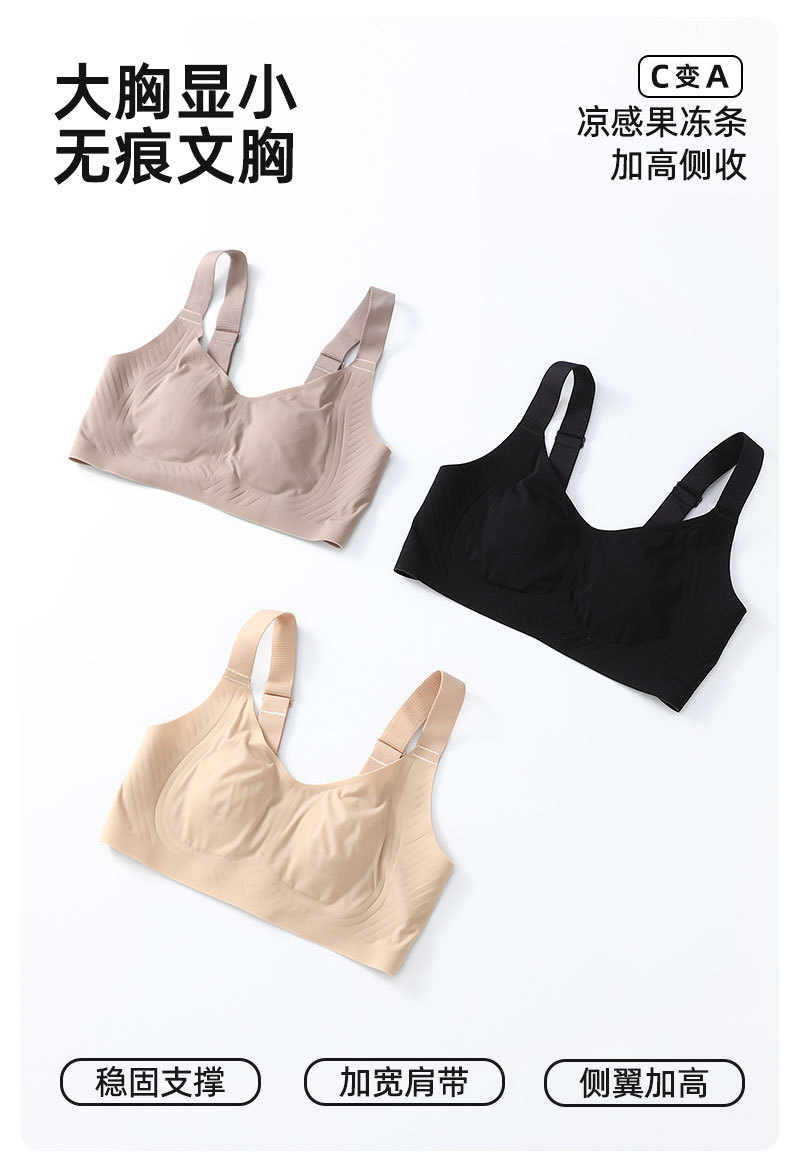 新款粉底液內衣女聚攏冰絲涼感果凍條胸罩女薄款大胸顯小無痕文胸