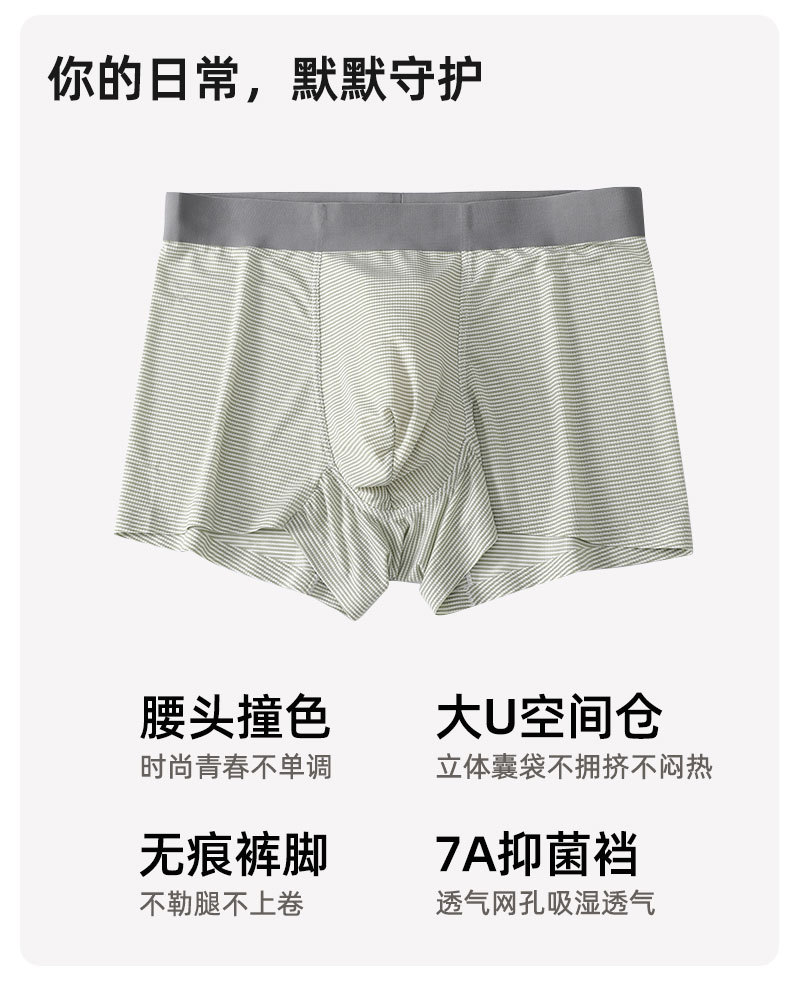 條紋透氣無痕男士內褲錦綸涼感平角褲撞色褲頭薄款男生蠶絲襠褲衩