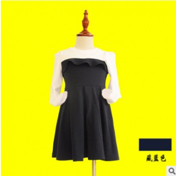 120-130-140-150-165 五個尺碼 簡約圓領 松緊領口 穿脫方便 韓版波浪花邊 泡泡袖設計 活潑可愛 暗褶的設計Geng好的修飾了版型 面料有垂感 裙擺自然下垂 形成波浪形 學院風的連衣裙 快快入手吧!