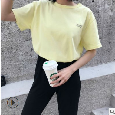 短袖女T恤韓版19春夏新款 簡約純色胸前stu字母印花時尚潮流百搭t