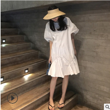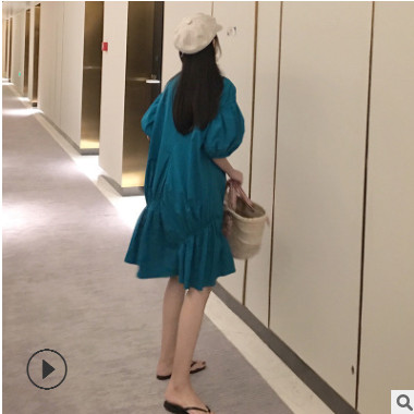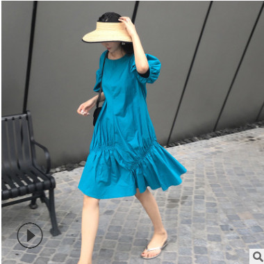 網(wǎng)紅連衣裙女夏2019新款藍色中長款超仙韓版燈籠袖顯瘦寬松裙子潮