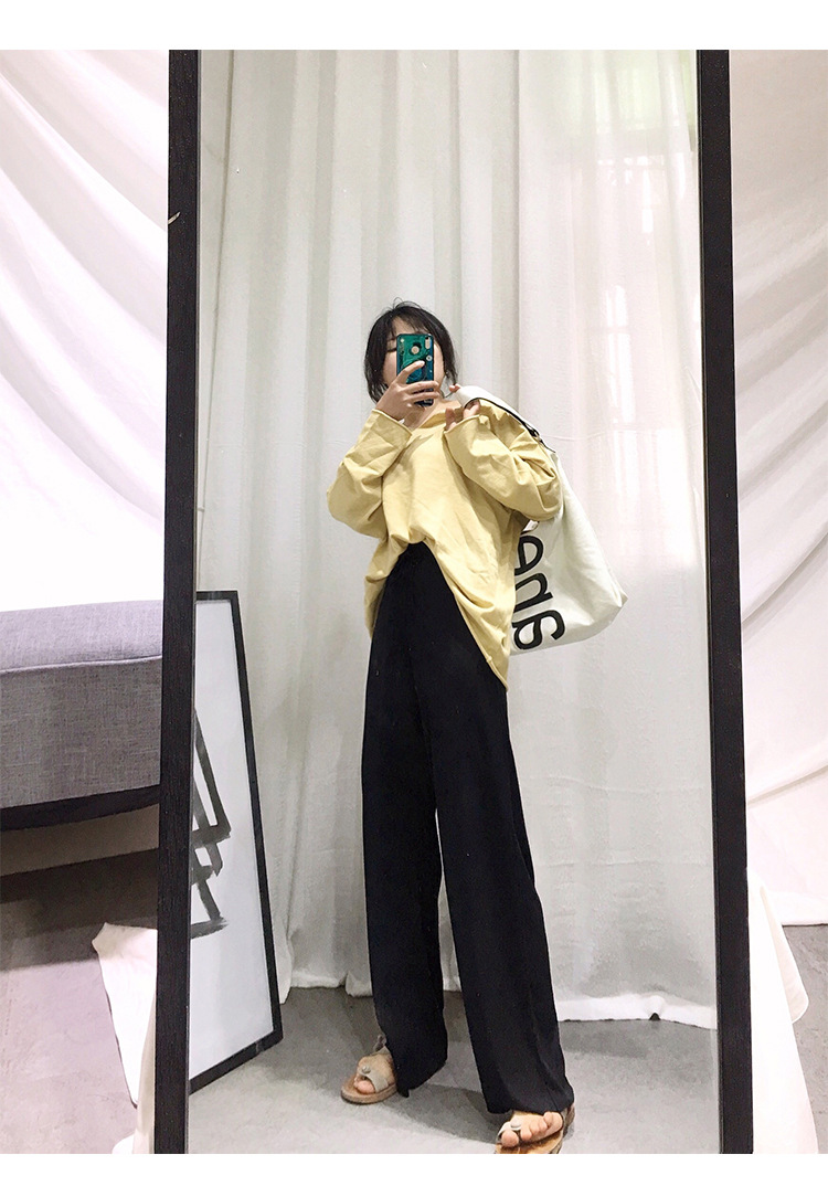 2020新款闊腿褲子女夏休閑高腰墜感寬松顯瘦直筒垂感拖地長褲